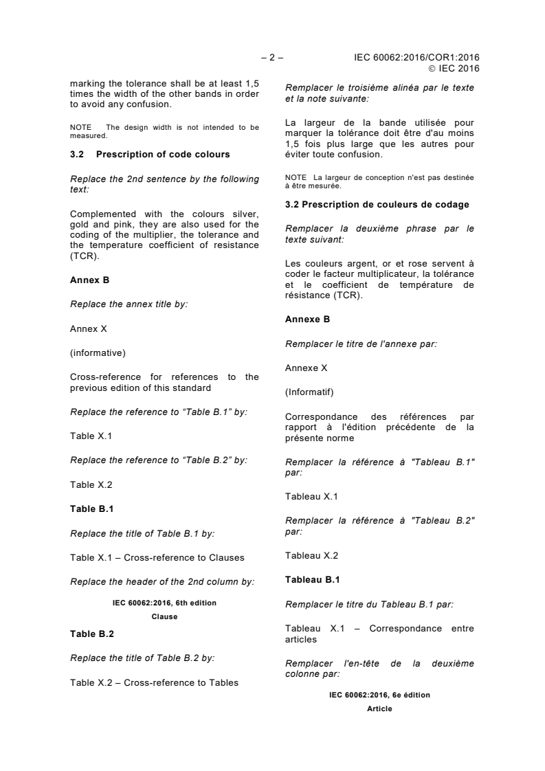 Corrigendum 1 - Marquage des codes pour résistances et condensateurs