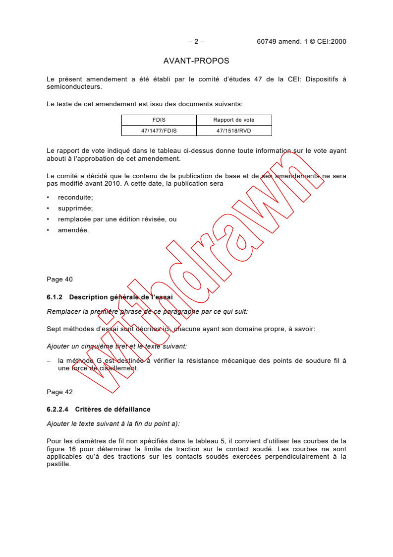 Le présent amendement a été établi par le comité d’études 47 de la CEI: Dispositifs à