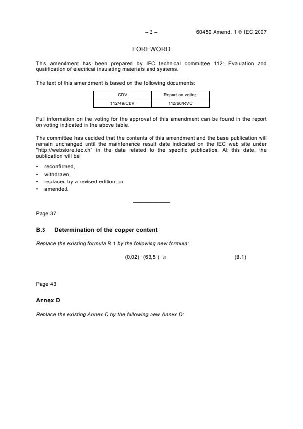 This amendment has been prepared by IEC technical committee 112: Evaluation and