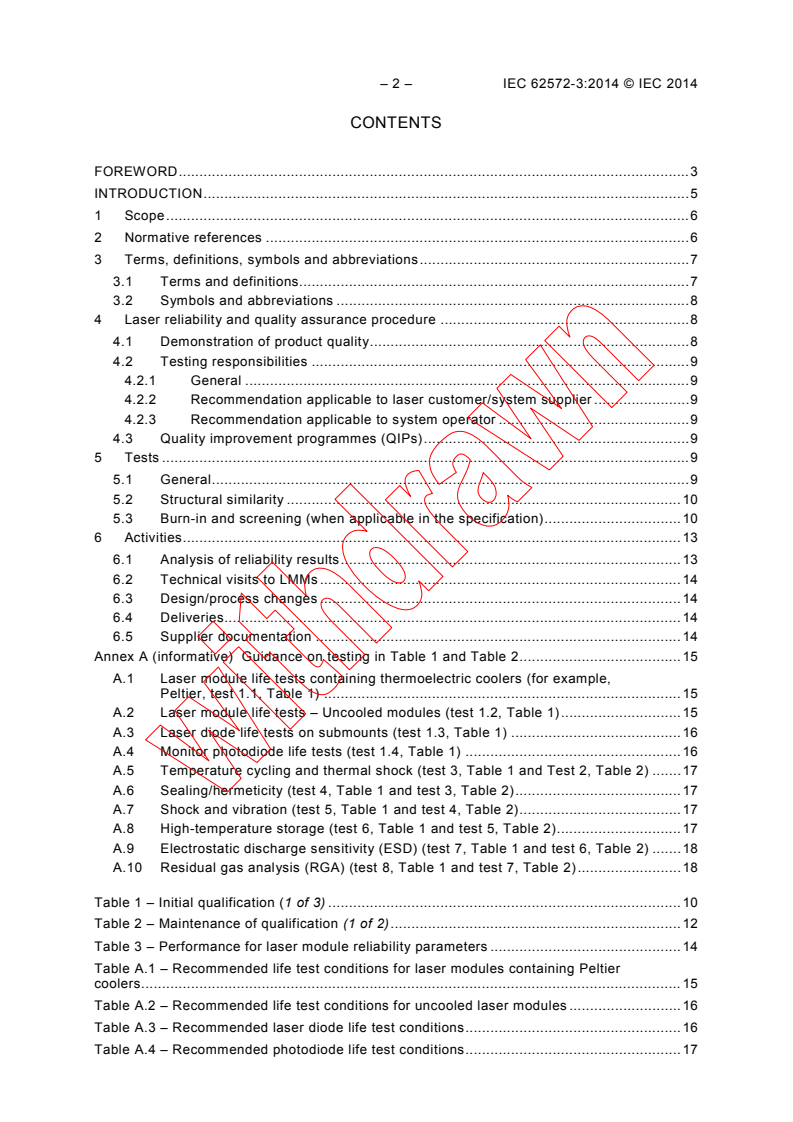 IEC 62572-3:2014 is an international standard published by the International Electrotechnical Commission (IEC) that focuses on the reliability assessment of laser modules used in telecommunication systems. This standard is part 3 in the IEC 62572 series, dedicated to reliability standards for fibre optic active components and devices. The primary goal of IEC 62572-3 is to establish a unified methodology for evaluating the reliability of laser modules, thereby minimizing operational risks, promoting product development, and enhancing overall reliability in telecommunication applications.