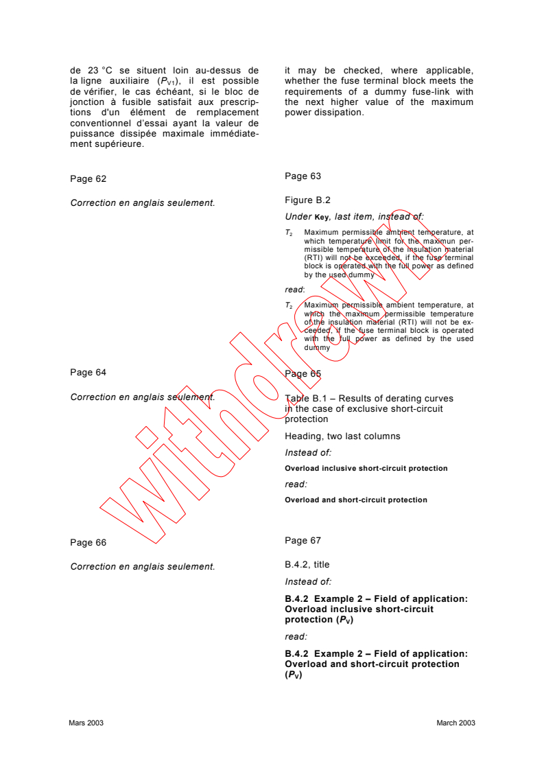 Corrigendum 1 - Appareillage à basse tension - Partie 7-3: Matériels accessoires - Prescriptions de sécurité pour les blocs de jonction à fusible