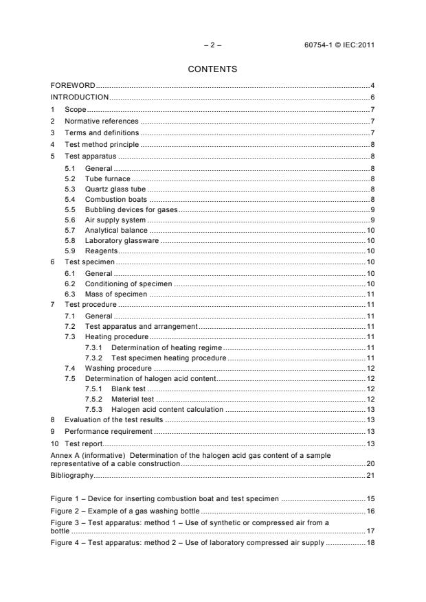 IEC 60754-1:2011 is a standard published by the International Electrotechnical Commission (IEC). Its full title is "Test on gases evolved during combustion of materials from cables - Part 1: Determination of the halogen acid gas content". This standard covers: IEC 60754-1:2011 specifies the apparatus and procedure for the determination of the amount of halogen acid gas, other than hydrofluoric acid, evolved during the combustion of compounds based on halogenated polymers and compounds containing halogenated additives taken from electric or optical fibre cable constructions. The method specified in this standard is intended for the testing of individual components used in a cable construction. The use of this method will enable the verification of requirements which are stated in the appropriate cable specification for individual components of a cable construction. The significant technical changes with respect to the previous edition are as follows: - improved definition of safety requirements relating to capture of gases and use of reagents; - introduction of guidance on preparation of test specimens for a more even combustion; - improvements to the procedure for establishing the heating regime; - improved expression of tolerances and precision; - definition of the procedure for the blank test; - introduction of an informative annex giving details of a methodology for the determination of the halogen acid gas content of a sample representative of a cable construction. The contents of the corrigendum of November 2013 have been included in this copy.