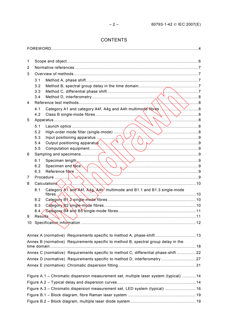 Keywords: IEC 60793-1-42, chromatic dispersion, optical fibres, measurement methods, phase shift, interferometry, spectral group delay, differential phase, dispersion fitting, single-mode, multimode.