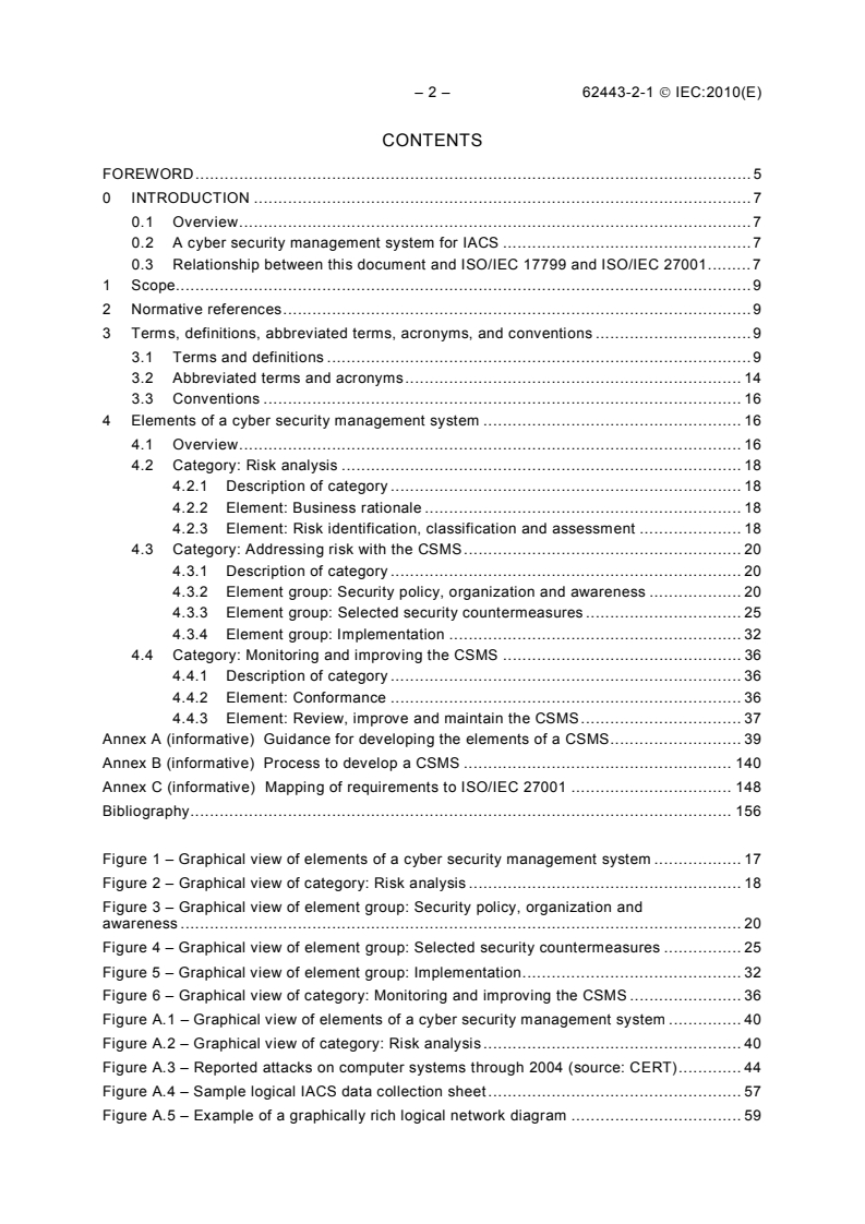 - ISO/IEC 27001 (information security management) - Annex C provides a mapping between IEC 62443-2-1 and ISO/IEC 27001.