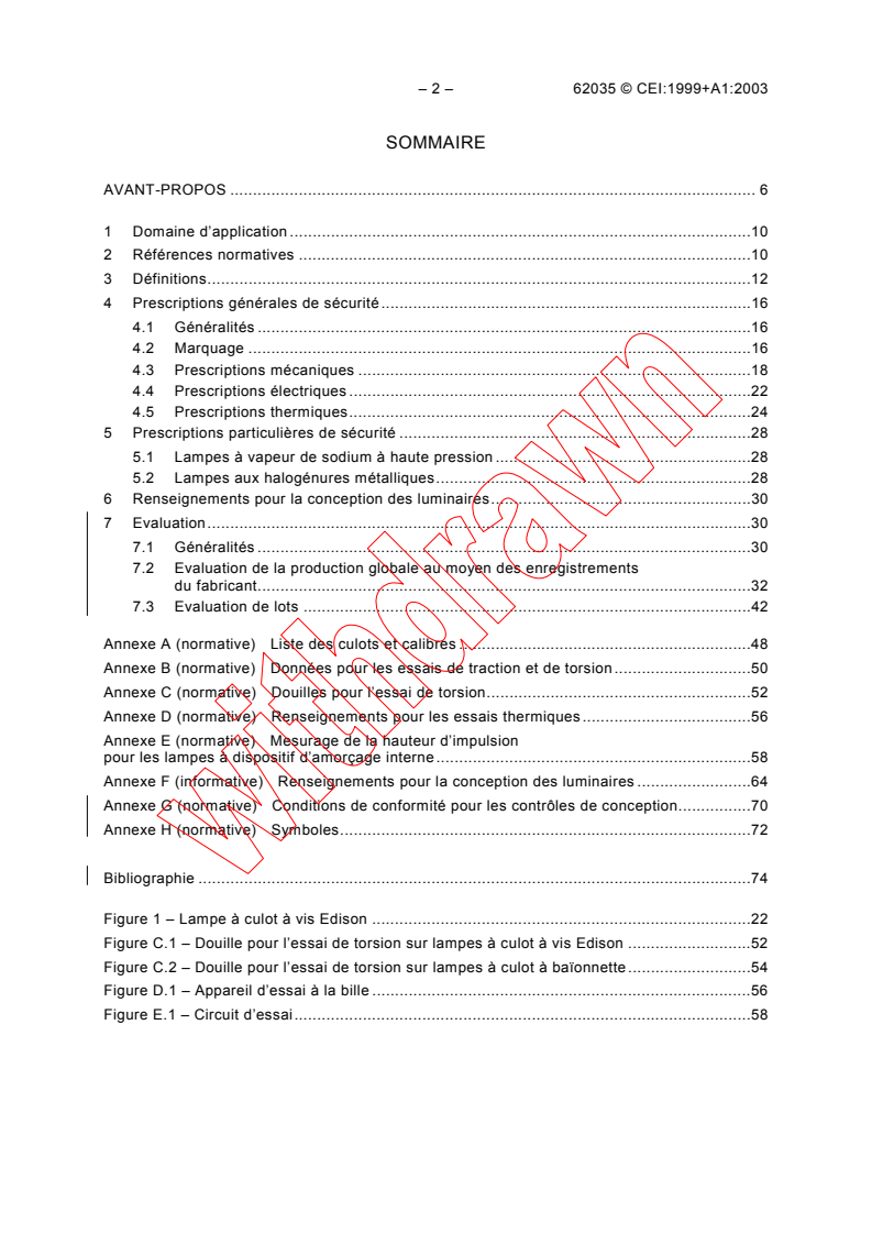 IEC 62035:1999+AMD1:2003 CSV - Discharge lamps (excluding fluorescent lamps) - Safety specifications Released:8/12/2003 Isbn:283187114X