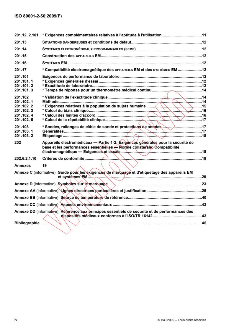 ISO 80601-2-56:2009 applies to the basic safety and essential performance of a clinical thermometer in combination with its accessories, referred to as ME equipment. ISO 80601-2-56:2009 specifies the general and technical requirements for electrical clinical thermometers. ISO 80601-2-56:2009 applies to all electrical clinical thermometers that are used for measuring the body temperature of patients. Clinical thermometers can be equipped with interfaces to accommodate secondary indicators, printing equipment, and other auxiliary equipment to create ME systems. ISO 80601-2-56:2009 does not apply to auxiliary equipment. ME equipment that measures a temperature not as a primary purpose, but as a secondary function, is outside the scope of ISO 80601-2-56:2009. Requirements for ME equipment intended to be used for non-invasive human febrile temperature screening of groups of individuals under indoor environmental conditions are given in IEC 80601-2-59:2008 and such ME equipment is not covered by ISO 80601-2-56:2009.
