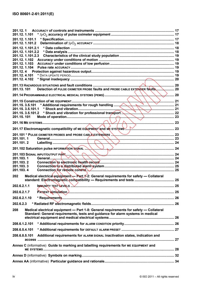 ISO 80601-2-61:2011 - Medical electrical equipment -- Part 2-61: Particular requirements for basic safety and essential performance of pulse oximeter equipment Released:3/16/2011
