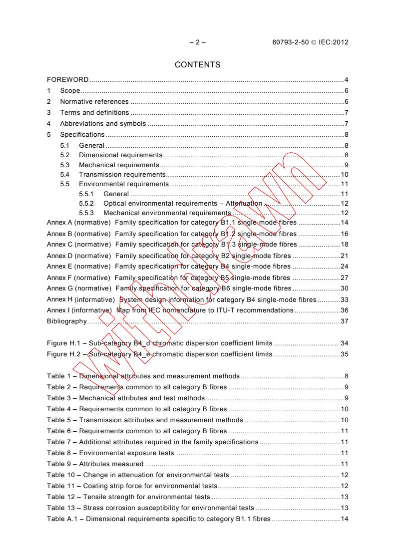 IEC 60793-2-50:2012 is applicable to optical fibre categories B1.1, B1.2, B1.3, B2, B4, B5 and B6. A map illustrating the connection of IEC designations to ITU-T designations is shown in Annex I. These fibres are used or can be incorporated in information transmission equipment and optical fibre cables. This fourth edition cancels and replaces the third edition, published in 2008, and constitutes a technical revision. This edition includes the following significant technical changes with respect to the previous edition: