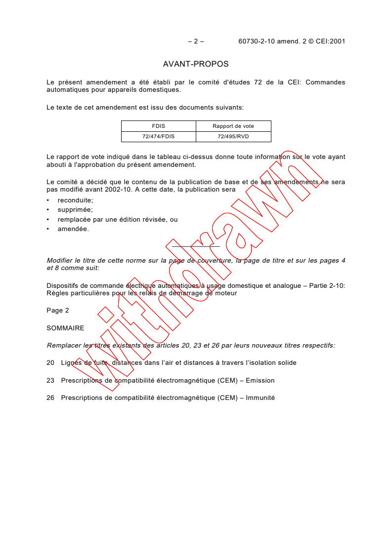 IEC 60730-2-10:1991/AMD2:2001 - Amendment 2 - Automatic electrical controls for household and similar use - Part 2: Particular requirements for electrically operated motor starting relays Released:2/15/2001 Isbn:283185623X