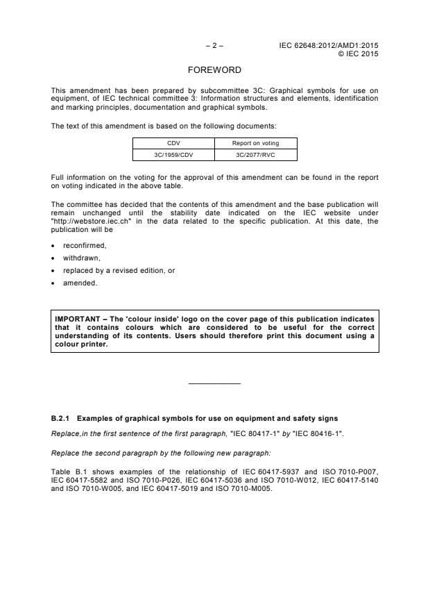 Keywords: IEC 62648 amendment, graphical symbols on equipment, IEC graphical symbols, safety symbols IEC, ISO 7010, IEC 60417, electrical equipment labeling, international electrotechnical standards, IEC publications, safety signs guidelines