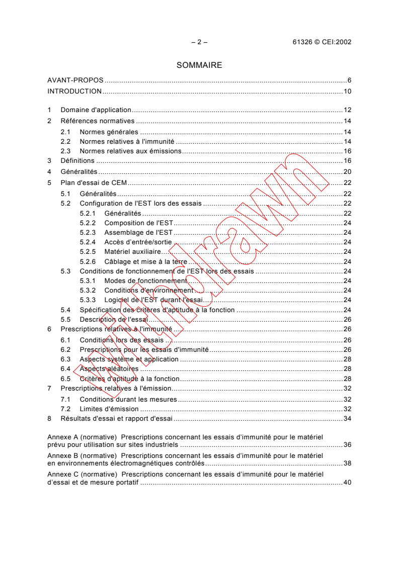 IEC 61326:2002 - Matériels électriques de mesure, de commande et de laboratoire - Prescriptions relatives à la CEM Released:2/21/2002