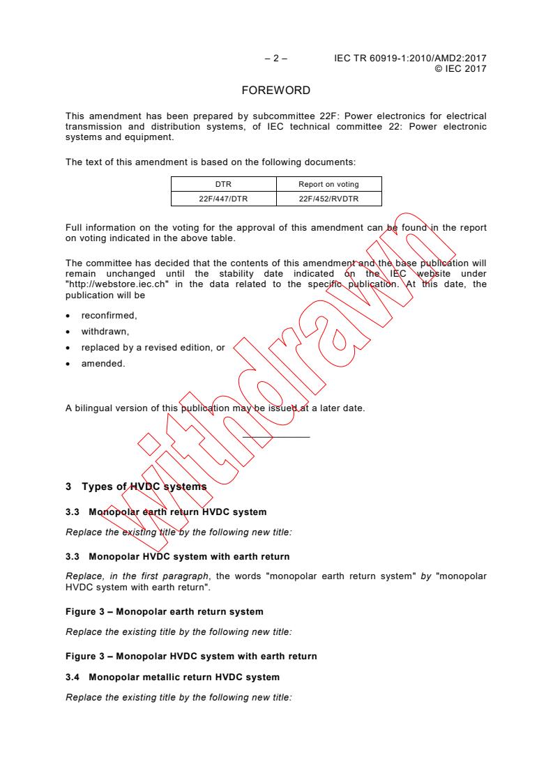 IEC TR 60919-1:2010/AMD2:2017 is invaluable for utilities and engineers designing HVDC transmission links, particularly those utilizing line-commutated converters, which are prevalent in long-distance and high-capacity power transfer.HVDC System Planning and Protection