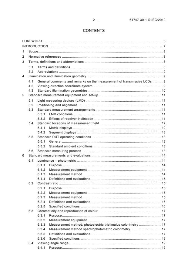 This standard assumes that integrated backlights provide illumination for all measurement procedures. In cases where LCD modules without integrated backlights are used, external backlights may be provided, and the measurement approaches generally remain applicable. The 2012 edition represents a technical revision of IEC 61747-6:2004, aligning its document structure with IEC 61747-6-2 and incorporating various technical and editorial updates. IEC 61747-30-1:2012 should be used in conjunction with IEC 61747-1:1998.