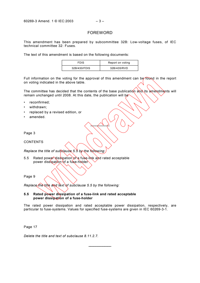 This amendment has been prepared by subcommittee 32B: Low-voltage fuses, of IEC