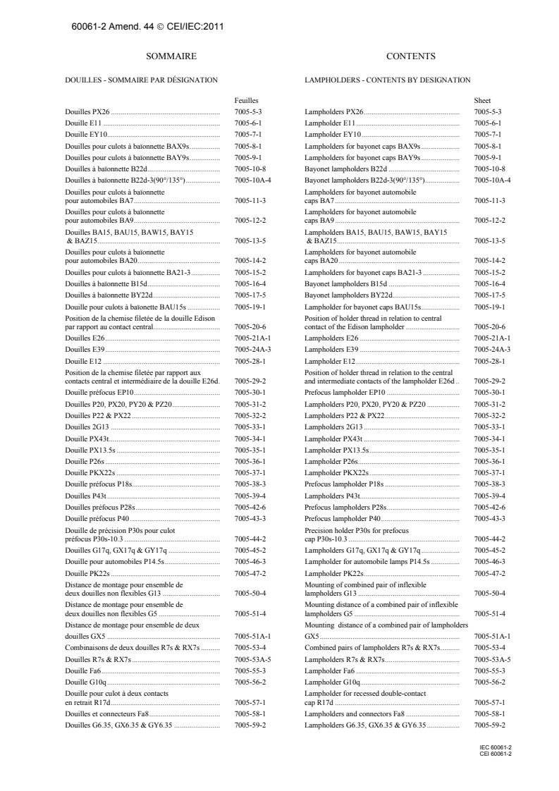 Amendement 44 - Culots de lampes et douilles ainsi que calibres pour le contrôle de l'interchangeabilité et de la sécurité - Partie 2: Douilles