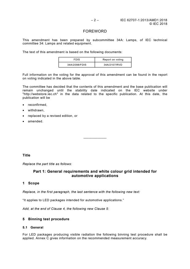Amendment 1 - LED-binning - Part 1: General requirements and white colour grid intended for automotive applications intended for automotive applications