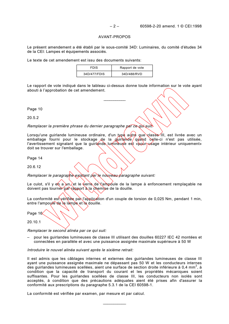 Amendement 1 - Luminaires Partie 2 : Règles particulières Section 20 : Guirlandes lumineuses