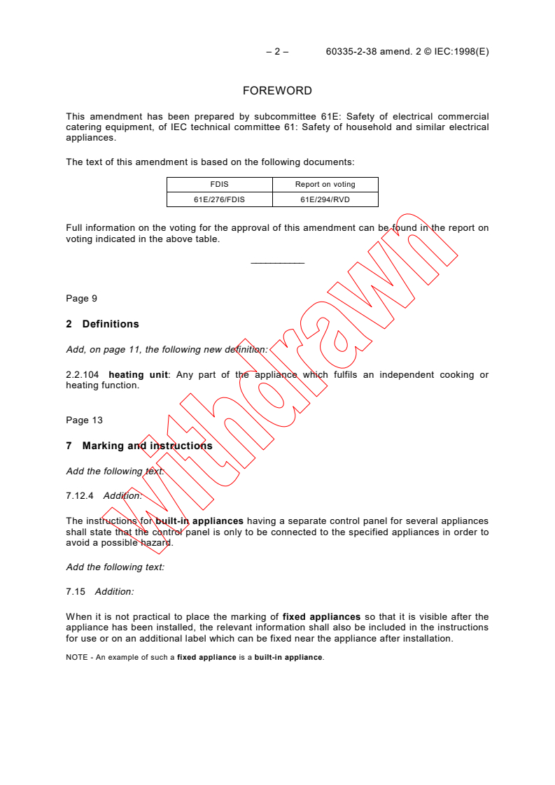 – 2 – 60335-2-38 amend. 2 © IEC:1998(E)
