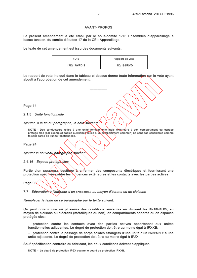 Amendement 2 - Ensembles d'appareillage à basse tension - Partie 1: Ensembles de série et ensembles dérivés de série