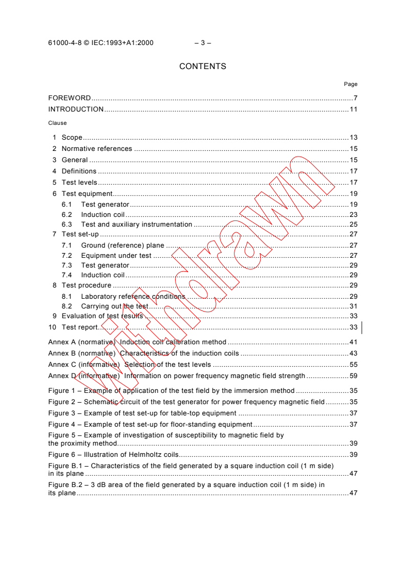 - Test levels: The standard defines recommended levels for continuous and short-duration magnetic fields (tables provided in the document). Exact numeric values are in the standard itself.