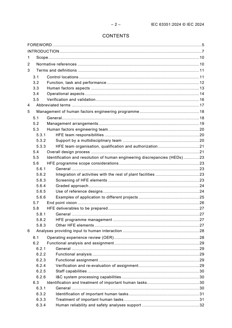 IEC 63351:2024 is a standard published by the International Electrotechnical Commission (IEC). Its full title is "Nuclear facilities - Human factors engineering - Application to the design of human-machine interfaces". This standard covers: IEC 63351:2024 specifies the basic principles and requirements for the application of a human factors engineering (HFE) programme to the design of the human-machine interfaces (HMI) throughout the lifetime of a nuclear facility. The focus of this document is on control rooms and control functions as discussed in the text. This document focuses on the application of a human factors engineering (HFE) programme to the design of the human-machine interfaces throughout the lifetime of a nuclear facility, including consideration of plant modifications. This document is applicable to nuclear facilities such as: nuclear power plants (NPPs), research reactors, uranium enrichment and nuclear fuel fabrication facilities, spent fuel storage and reprocessing facilities.
