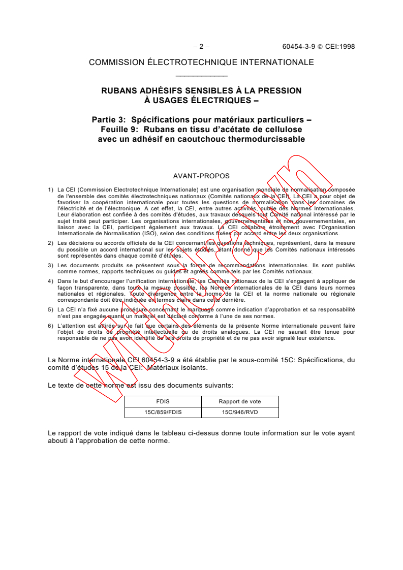 60454-3-9 (1998) Feuille 9: Rubans en tissu d'acétate de cellulose 60454-3-9 (1998) Sheet 9: Cellulose acetate woven fabric tapes with