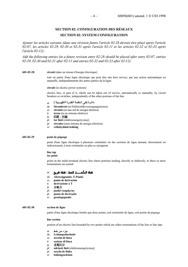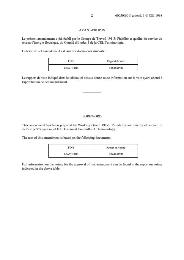 60050(601) Amend. 1 IEC:1998 – 3 –
