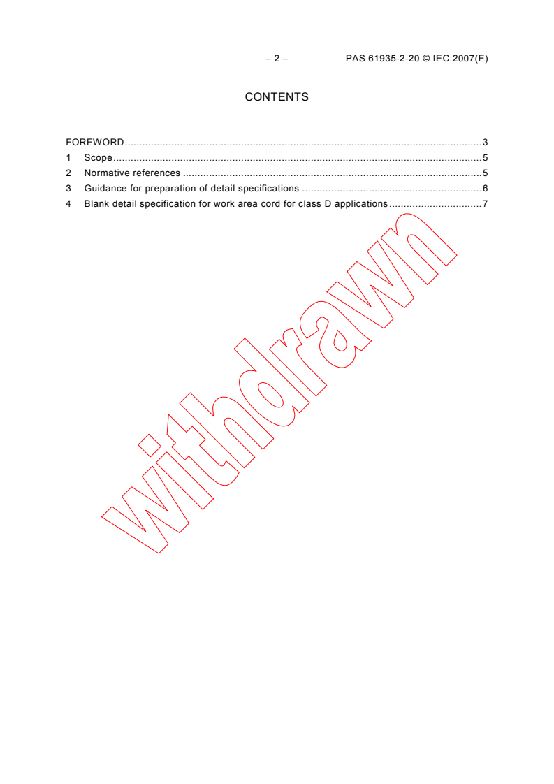 – 4 – PAS 61935-2-20 © IEC:2007(E)