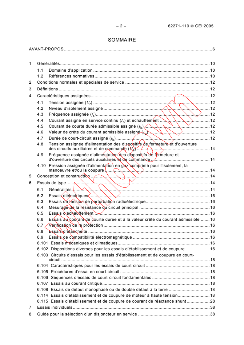 Applicable aux disjoncteurs à courant alternatif conçus pour une installation à l'intérieur ou à l'extérieur, et pour fonctionner à des fréquences de 50 Hz à 60 Hz, sur des réseaux de tensions supérieures à 1 000 V et prévus pour l'établissement et la coupure de courants inductifs avec ou sans pouvoir de coupure de court-circuit additionnel. Cette norme est applicable aux disjoncteurs selon CEI 62271-100 et qui sont utilisés pour l'établissement et la coupure de courants de moteurs à haute tension et de réactances shunt, et aussi aux contacteurs à haute tension utilisés pour l'établissement et la coupure de courants de moteurs à haute tension. La manoeuvre de transformateurs à vide, c'est-à-dire la coupure de courant magnétisant de transformateur, n'est pas prise en compte dans cette norme. Les raisons pour cela sont les suivantes: a) à cause du comportement non linéaire du circuit magnétique du transformateur, il n'est pas possible de modéliser correctement l'établissement et la coupure d'un courant magnétisant en utilisant des composants linéaires dans un laboratoire d'essais. Les essais effectués en utilisant un transformateur à disposition, tel qu'un transformateur d'essais, seront valables seulement pour le transformateur essayé et ne peuvent pas être représentatifs pour d'autres transformateurs; b) ainsi qu'il est détaillé dans le Guide d'application des CEI 62271-100 et 60694, les caractéristiques de cette manoeuvre sont habituellement moins sévères que les autres manoeuvres d'établissement et de coupure de courants inductifs. Il convient de noter que cette manoeuvre peut produire des surtensions sévères dans le ou les bobinages d'un transformateur en fonction de la caractéristique de réallumage du disjoncteur et des fréquences de résonances du bobinage du transformateur. L'établissement et la coupure de défaut en ligne, courant de discordance de phases et courants capacitifs ne sont pas applicables aux disjoncteurs pour la manoeuvre de réactances shunt ou de moteurs. Ces pouvoirs de coupure ne sont donc pas inclus dans cette norme.