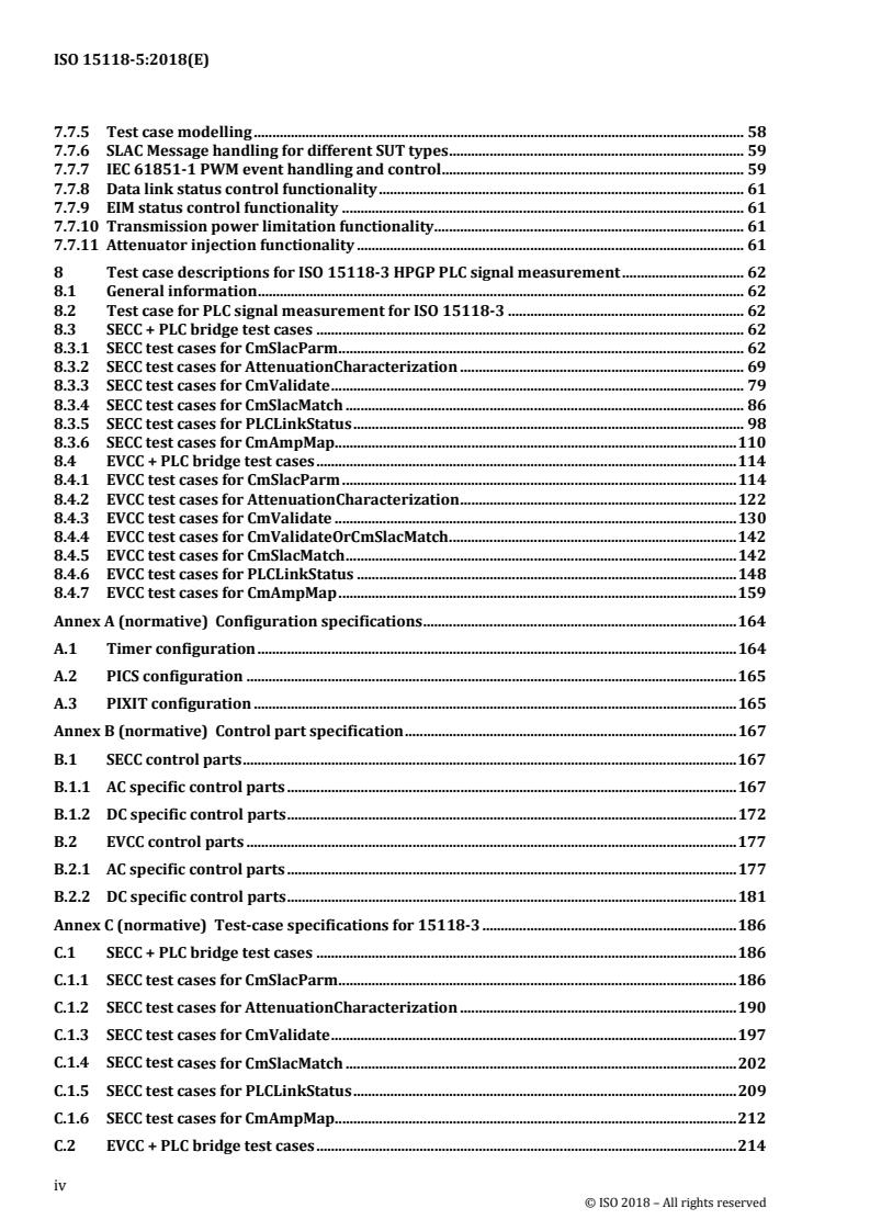 - Explicit scope boundaries: tests cover normative requirements of ISO 15118‑3 only; they do not assess performance, robustness, reliability, physical implementation details or power flow between EVSE and EV.