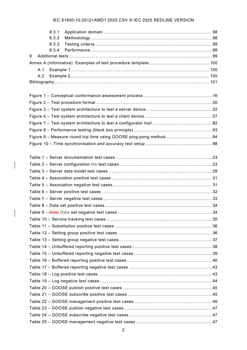 - additions of certain test procedures (client device conformance, sampled values device conformance, (engineering) tool related conformance, GOOSE performance).