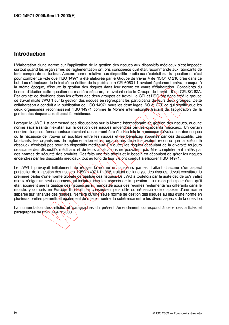 ISO 14971:2000/AMD1:2003 - Amendement 1 - Dispositifs médicaux - Application de la gestion des risques aux dispositifs médicaux Released:3/31/2003