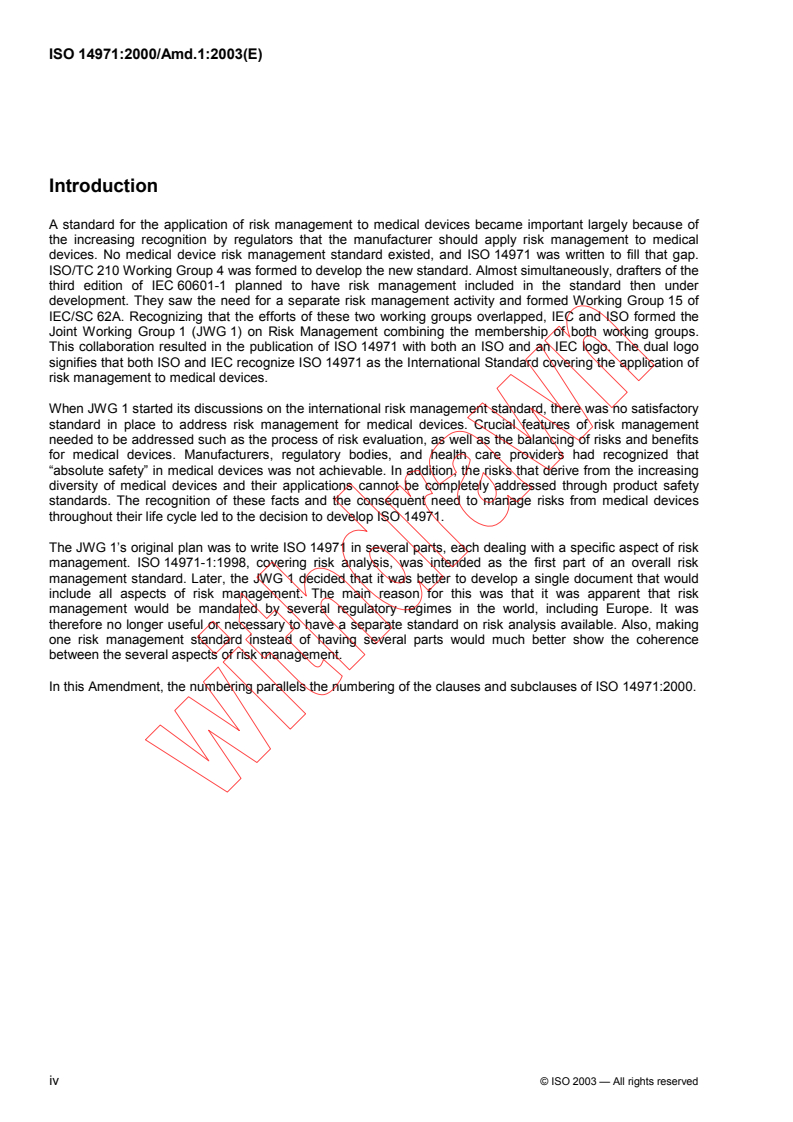 ISO 14971:2000/AMD1:2003 - Amendment 1 - Medical devices - Application of risk management to medical devices Released:3/31/2003