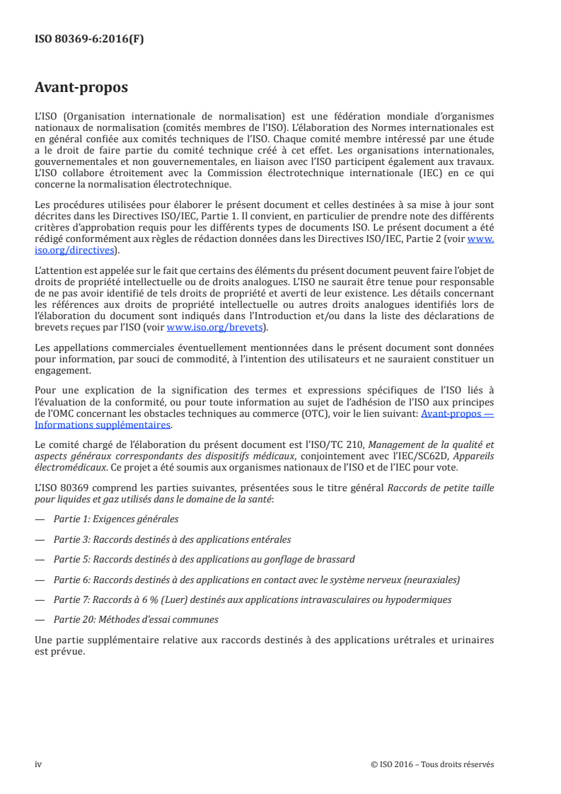ISO 80369-6:2016 - Raccords de petite taille pour liquides et gaz utilisés dans les domaine de la santé - Partie 6: Raccords destinés à des applications en contact avec le système nerveux (neuraxiales) Released:2/10/2016