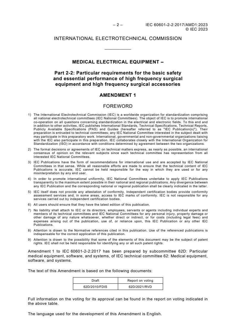 IEC 60601-2-2:2017/AMD1:2023 - Amendment 1 - Medical electrical equipment - Part 2-2: Particular requirements for the basic safety and essential performance of high frequency surgical equipment and high frequency surgical accessories Released:2/21/2023