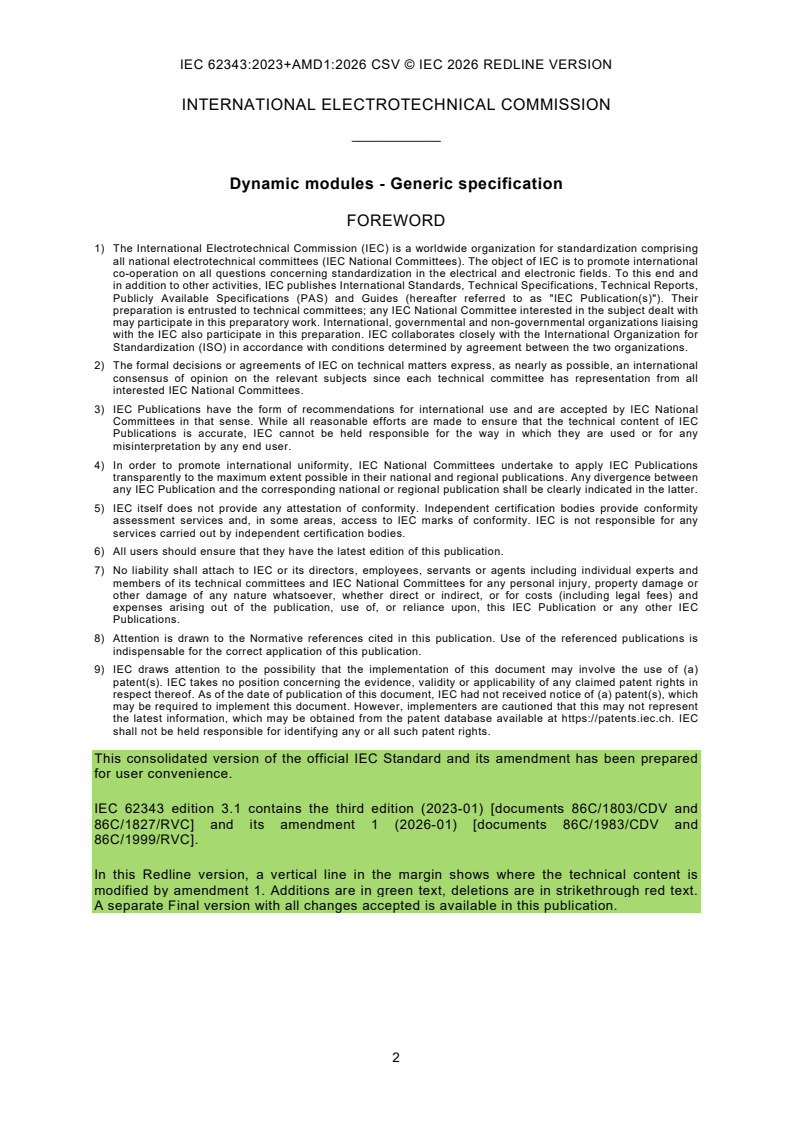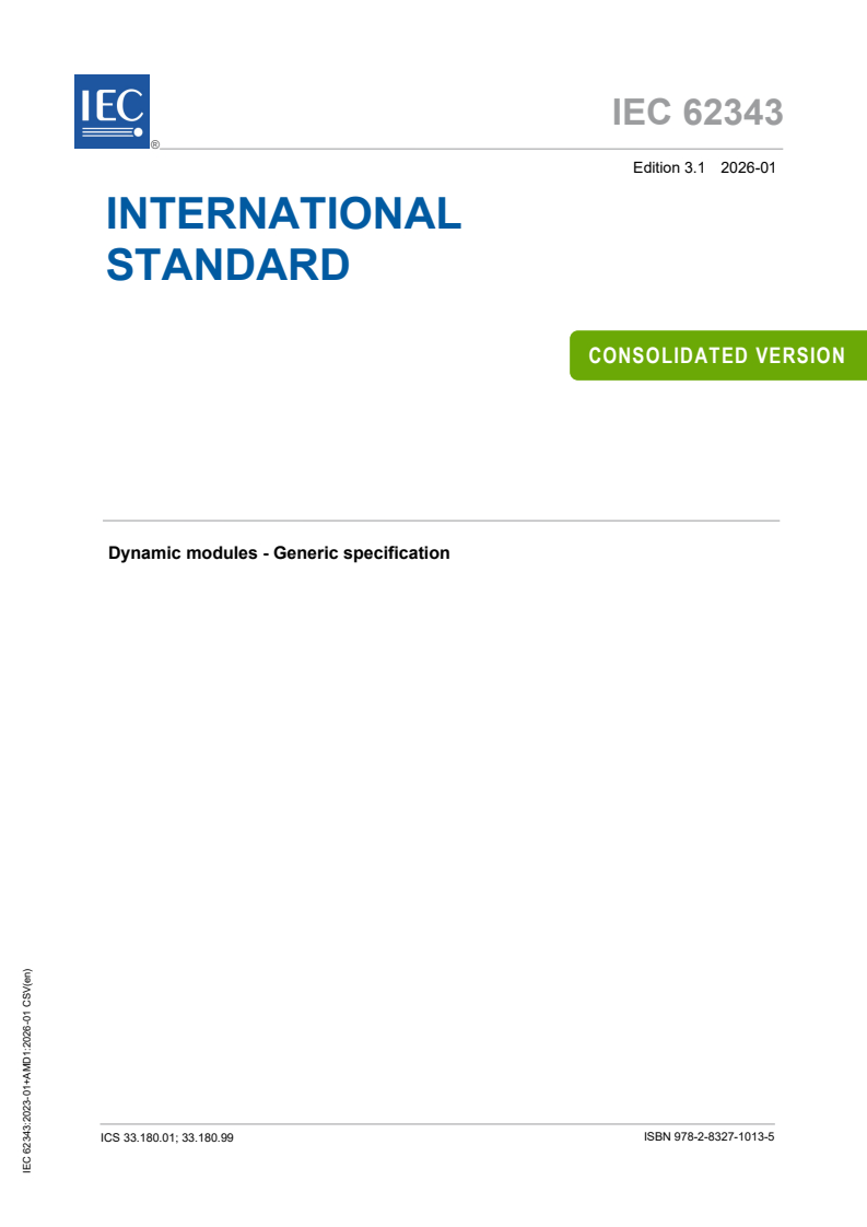 IEC 62343:2023+AMD1:2026 CSV - Dynamic modules - Generic specification Released:21. 01. 2026 Isbn:9782832710135