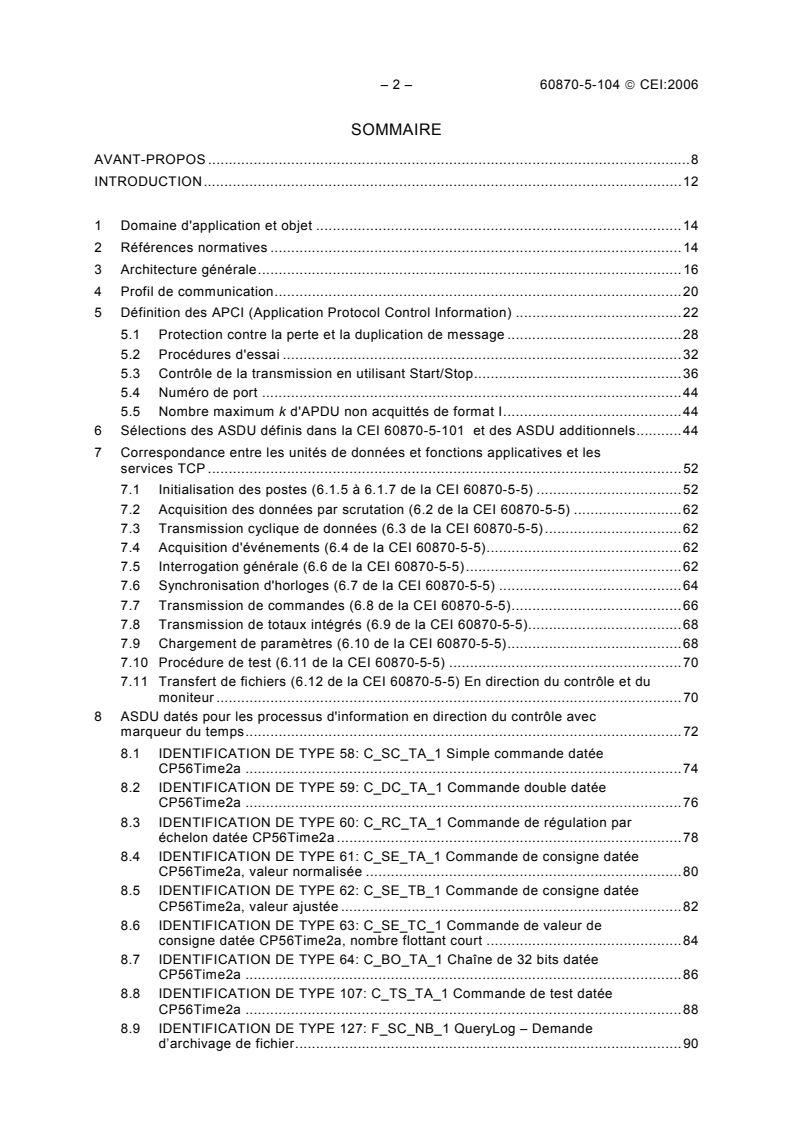 iec60870-5-104{ed2.0}fr_d - IEC 60870-5-104:2006 - Matériels et systèmes de téléconduite - Partie 5-104: Protocoles de transmission - Accès aux réseaux utilisant des profils de transport normalisés pour la CEI 60870-5-101 Released:6/13/2006
