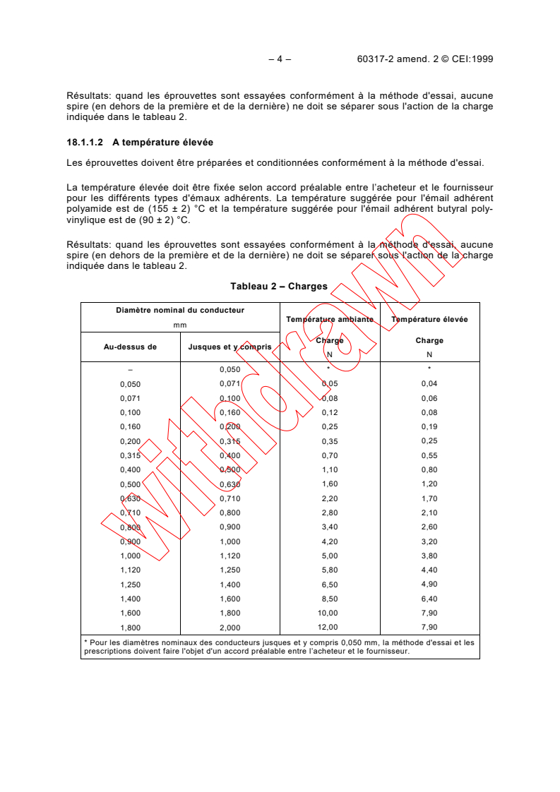 17.3 Diamètres nominaux des conducteurs supérieurs à 0,100 mm