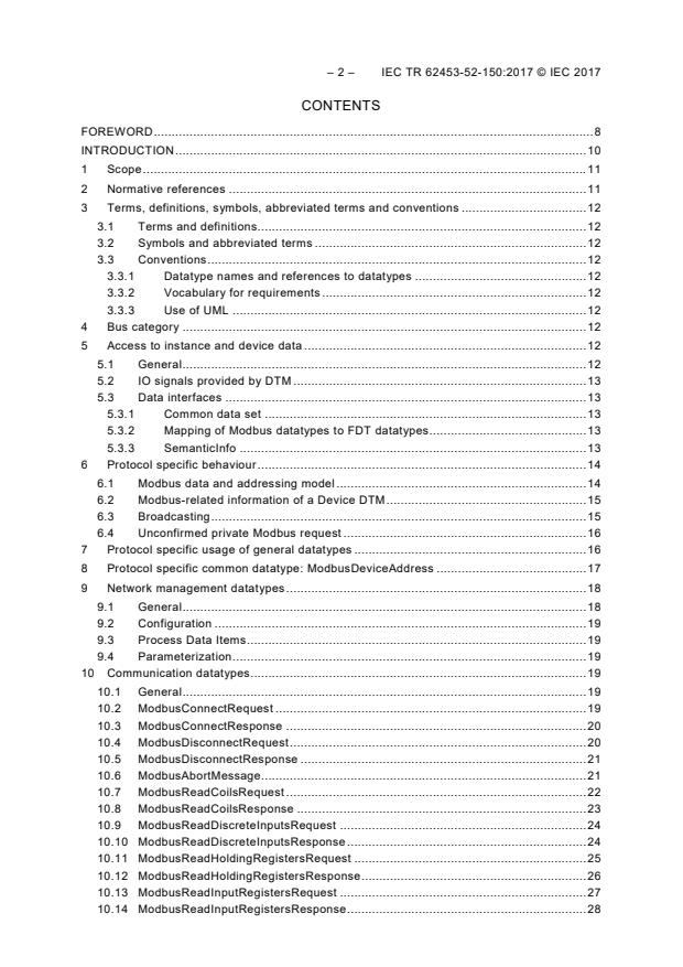 IEC TR 62453-52-150:2017(E) which is a Technical Report, provides information for integrating the Modbus® technology into the CLI-based implementation of FDT interface specification (IEC TR 62453-42).