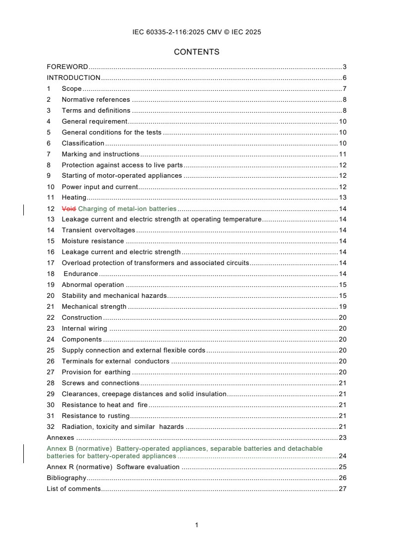 IEC 60335-2-116:2025 - Household and similar electrical appliances - Safety - Part 2-116: Particular requirements for furniture with electrically motorized parts - is the 2025 second edition that specifies safety requirements for furniture with electrically motorized parts (rated ≤ 250 V AC or DC, including battery-operated furniture). It replaces the 2019 edition and is a technical revision aligned with IEC 60335-1:2020. The standard covers reasonably foreseeable hazards from motorized furniture used in households and similar environments (shops, offices, hotels, hospitals, schools, light industry and farms).