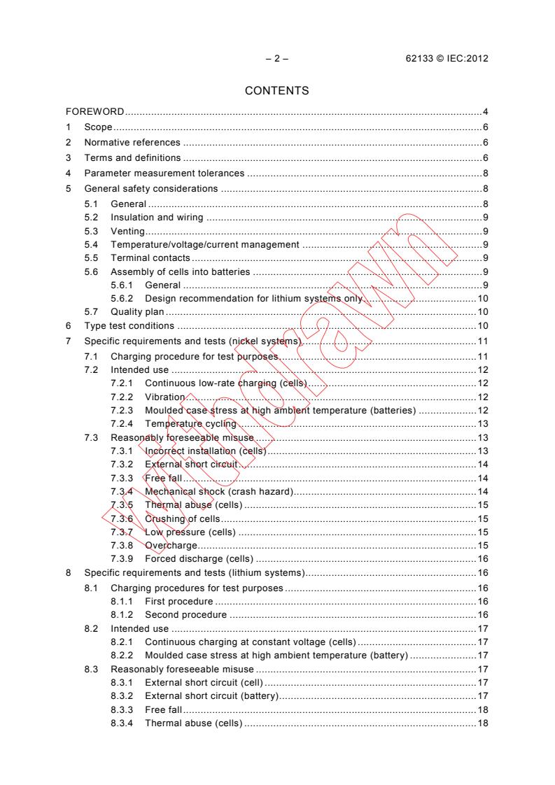 REDLINE IEC 62133:2012 - Secondary cells and batteries containing alkaline or other non-acid electrolytes – Safety requirements for portable sealed secondary cells, and for batteries made from them, for use in portable applications Released:12/7/2012 Isbn:9782832205051