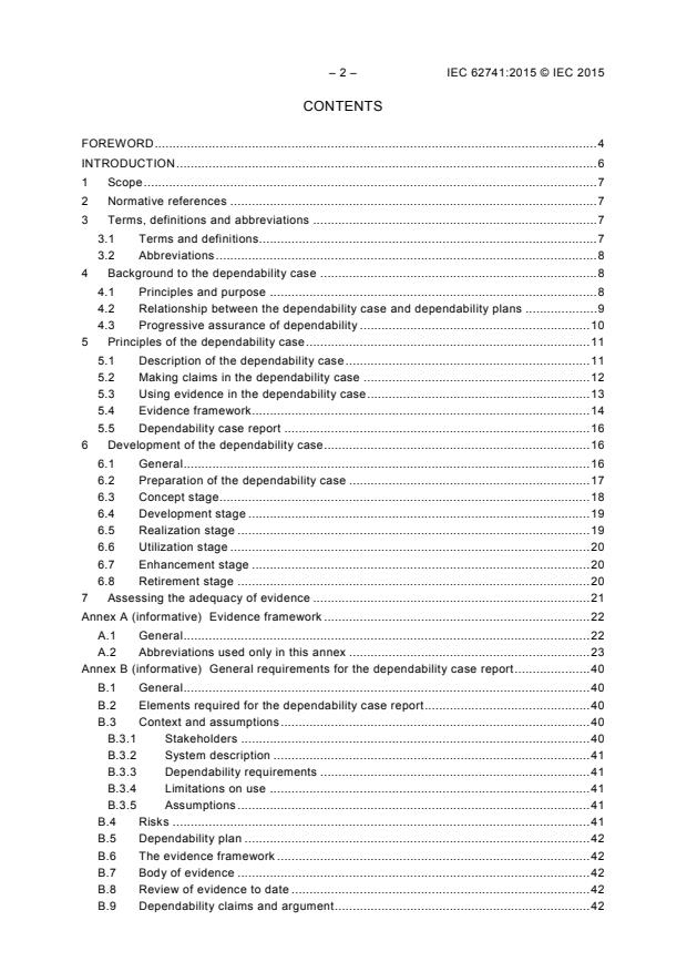 IEC 62741:2015 is a standard published by the International Electrotechnical Commission (IEC). Its full title is "Demonstration of dependability requirements - The dependability case". This standard covers: IEC 62741:2015 gives guidance on the content and application of a dependability case and establishes general principles for the preparation of a dependability case. This standard is written in a basic project context where a customer orders a system that meets dependability requirements from a supplier and then manages the system until its retirement. The methods provided in this standard may be modified and adapted to other situations as needed. The dependability case is normally produced by the customer and supplier but can also be used and updated by other organizations. For example, certification bodies and regulators may examine the submitted case to support their decisions and users of the system may update/expand the case, particularly where they use the system for a different purpose. Keywords: dependability, reliability, availability, maintainability, supportability, usability, testability, durability.