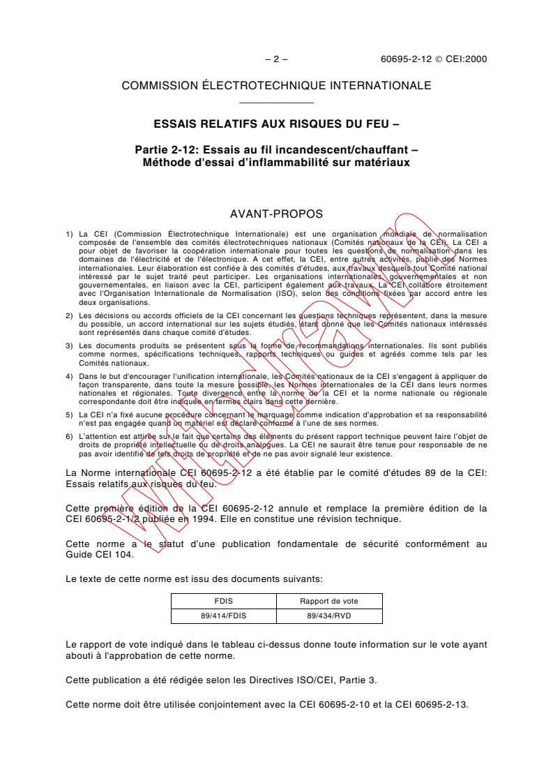 International Standard IEC 60695-2-12 has been prepared by technical committee 89: Fire