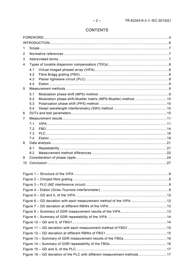 Keywords: IEC TR 62343-6-3:2010, tunable dispersion compensator, TDC, group delay ripple, GDR, group delay measurement, VIPA, FBG, PLC, etalon, MPS, SWI, PPS, phase ripple, round‑robin testing.