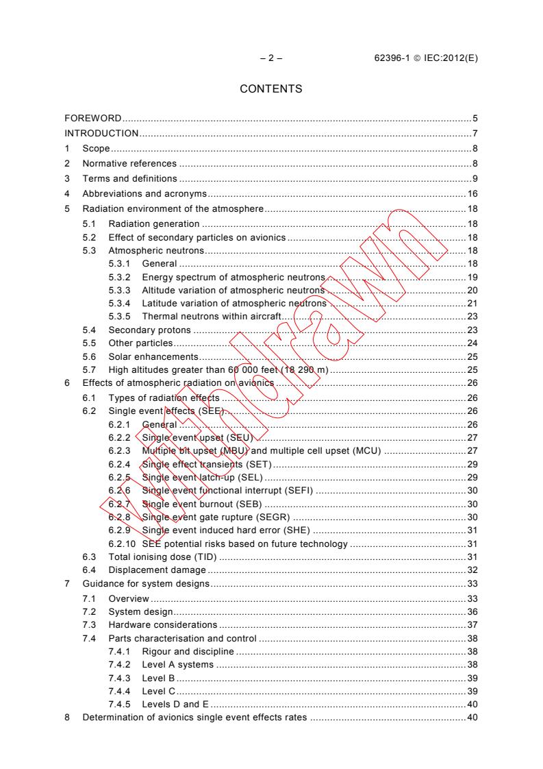 - IEC 62396-1 is Part 1 of a process management series on atmospheric radiation for avionics. Users should consult other IEC publications and aerospace industry radiation and avionics standards for complementary requirements (e.g., system safety, parts procurement, and test methods).
