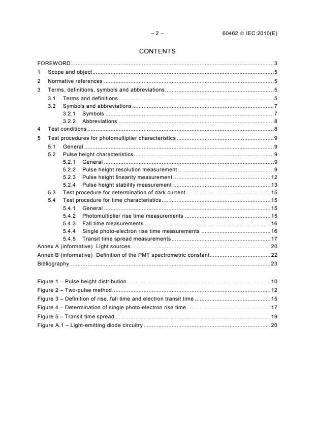 Keywords: IEC 60462:2010, photomultiplier tubes, PMT test procedures, scintillation counting, Cherenkov detectors, nuclear instrumentation, pulse height resolution, dark current, transit time spread, IEC 60306-4.