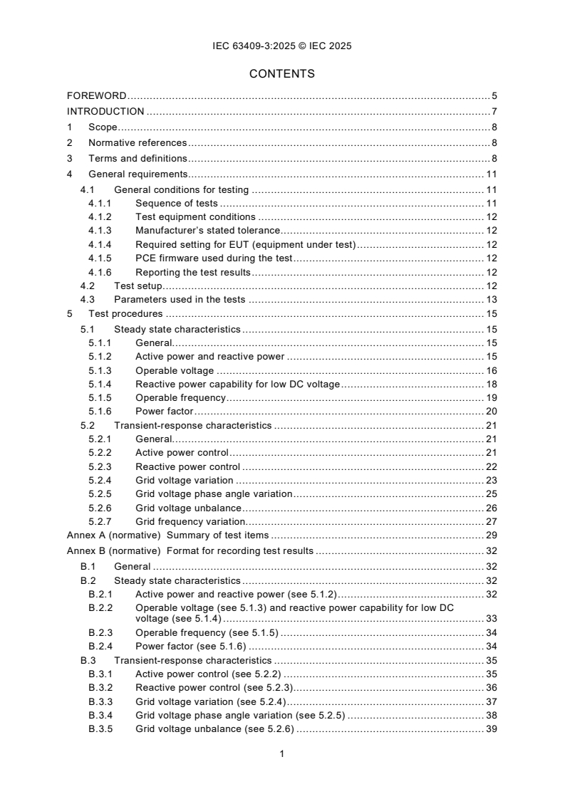 Keywords: IEC 63409-3:2025, photovoltaic, power conversion equipment, PCE testing, inverter testing, steady state characteristics, transient response, grid connection testing, PV systems, energy storage.