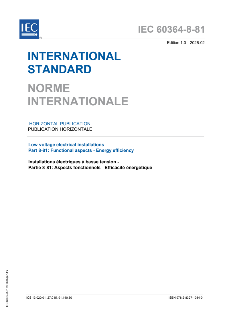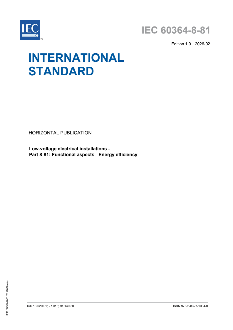 IEC 60364-8-81:2026 - Low-voltage electrical installations - Part 8-81: Functional aspects - Energy efficiency/12/2026