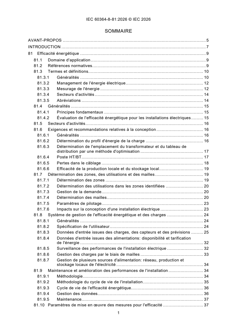 IEC 60364-8-81:2026 - Installations électriques à basse tension - Partie 8-81: Aspects fonctionnels - Efficacité énergétique/12/2026