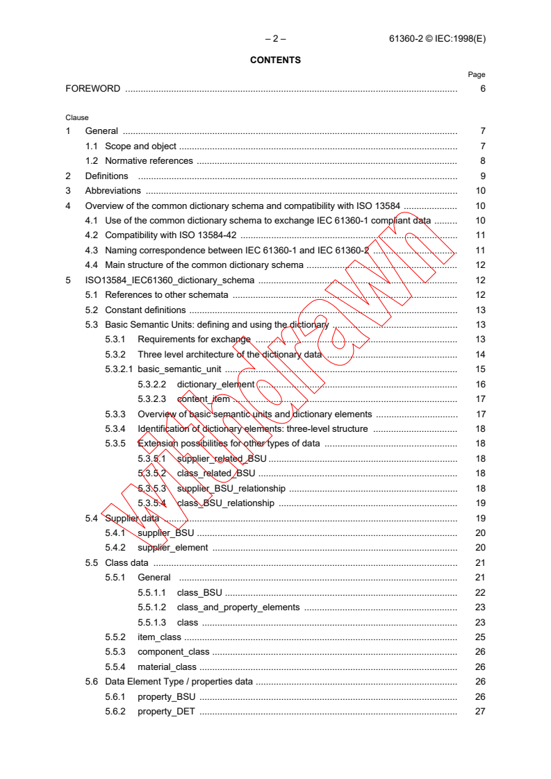 IEC 61360-2:1998 is a standard published by the International Electrotechnical Commission (IEC). Its full title is "Standard data element types with associated classification scheme for electric components - Part 2: EXPRESS Dictionary schema". This standard covers: Provides a common formal model for the IEC 61360-1 and ISO 13584-42 and facilitates their harmonization. Allows for the implementation of dictionary systems dealing with data delivered according to either of those standards.